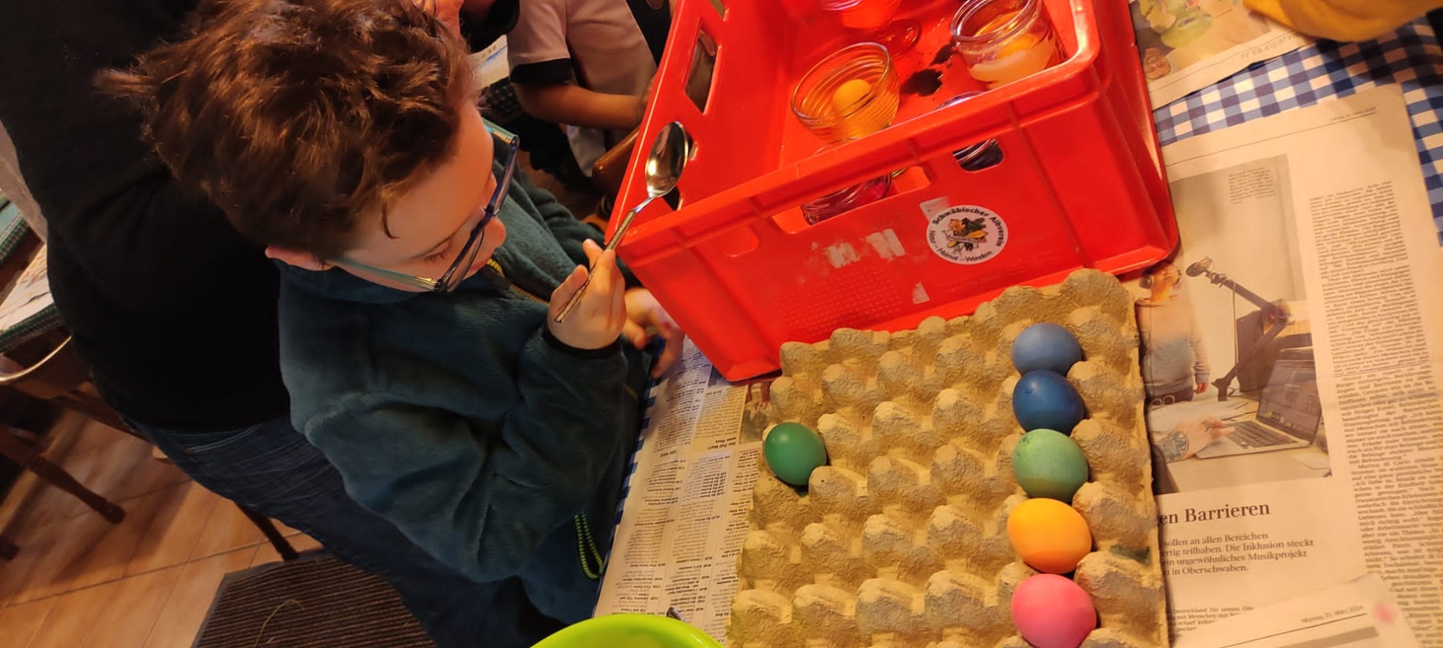 Vor Ostern kamen über 20 Kinder in mehreren Gruppen unterteilt ins Albvereinsheim, um wie früher Ostereier zu färben. Jedes Kind durfte sich danach sein eigenes Osternest anfertigen und mit verschiedenen Figuren und Süßigkeiten füllen. Wieder eine gelungene Kinderaktion der Ortsgruppe.